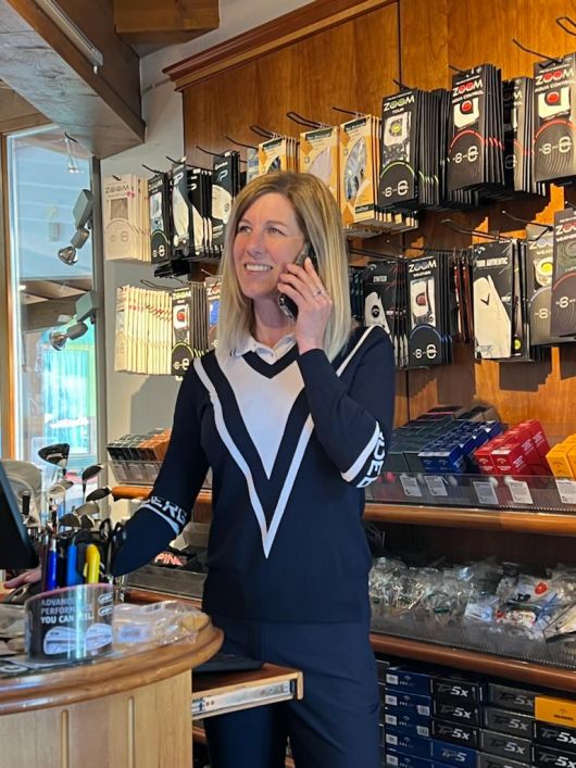 Sandra die gute Seele des Pro Shops wird Sie über die neuesten Golftrends sehr gerne beraten.